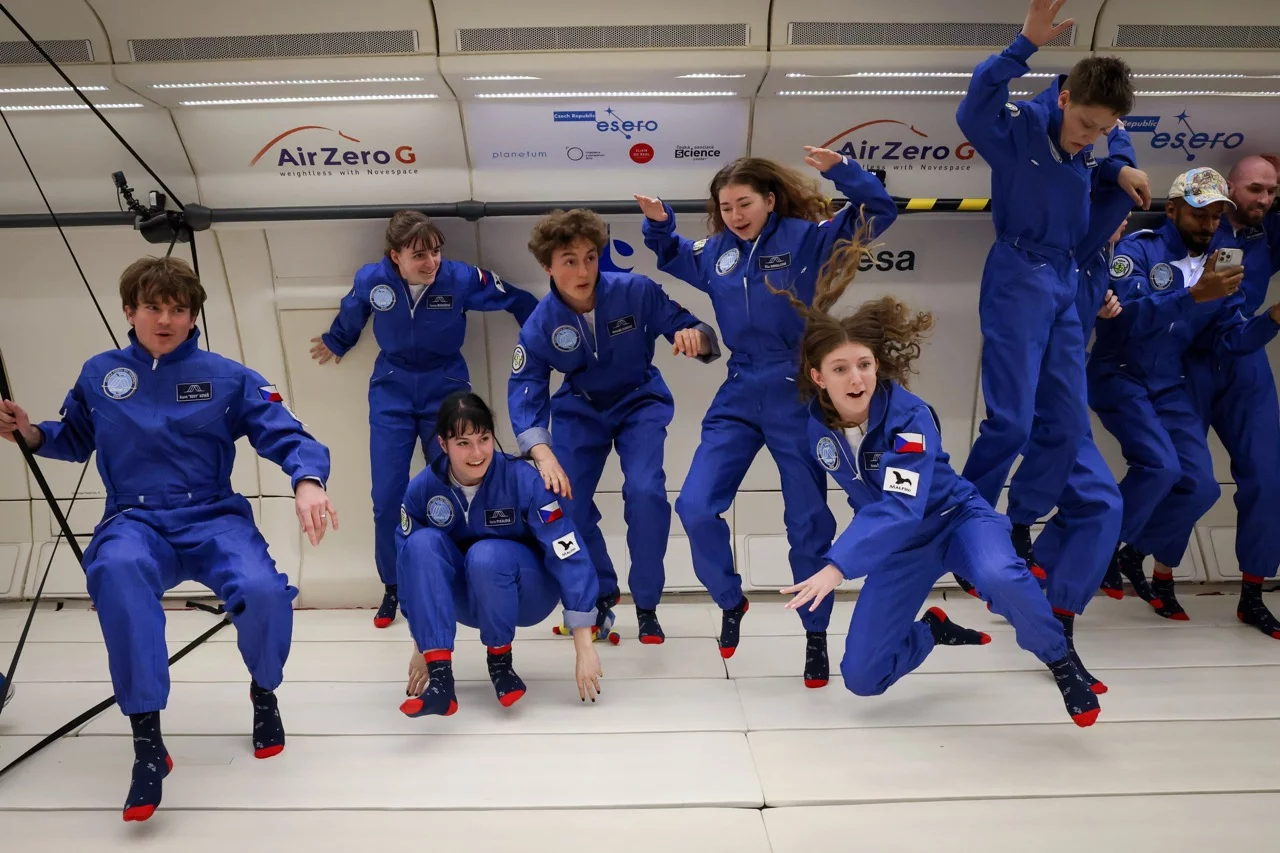 Stav beztíže při Zero-G letuStav beztíže při Zero-G letuStav beztíže při Zero-G letuZero-G České cesty do vesmíru Kadeti letu Zero-G na tiskové konferenci po parabolickém letuPosádka letu Zero-G před letadlem A310Posádka letu Zero-G před letadlem A310Prezident Petr Pavel doprovází posádku k letadlu při akci Zero-GFinální-posádka-letu-Zero-GAleš Svoboda, čeksý astronaut a velitel posádky Zero-G na tiskové konferenciTisková konference k letu Zero-GPrezident Petr Pavel doprovází posádku k letadlu při akci Zero-G